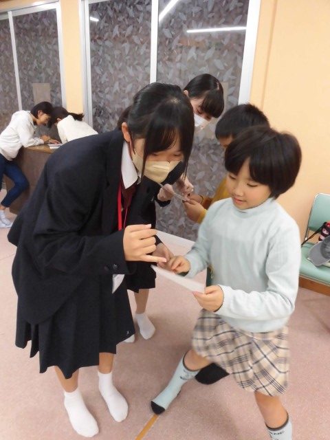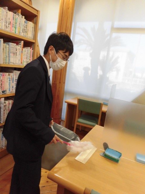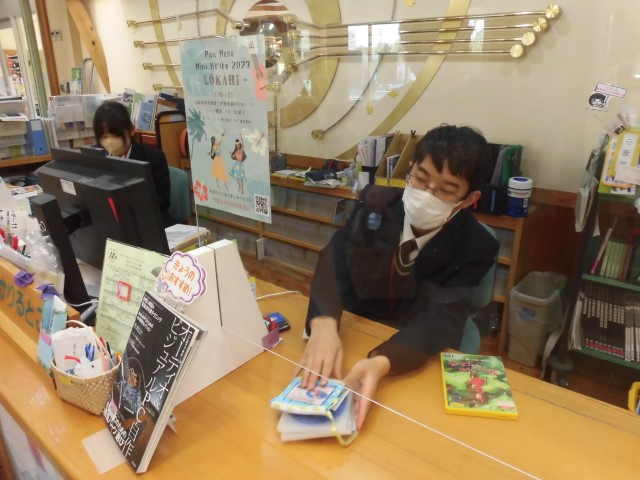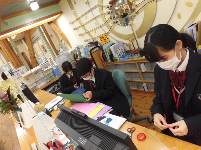 開館前の掃除、カウンター業務、図書の片付け、子供たちに配るおみやげ作り、おはなし会への参加など図書館の仕事を体験しました。