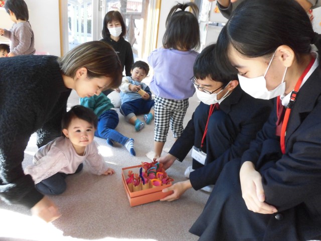 おはなし会では子供たちと仲良く触れ合う姿も見られ、子供たちも大喜び。