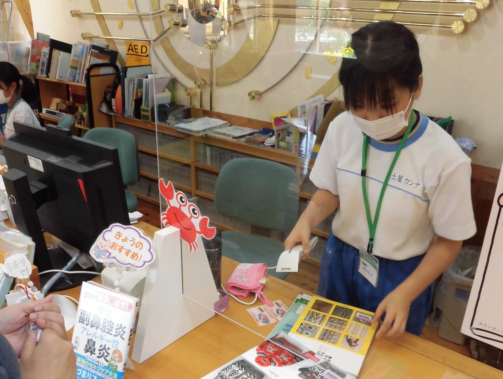カウンターでの貸出・返却業務、 返却された本の片付け、おはなし会のへの参加、子どもたちへのおみやげ作り、他にも図書整理、掲示物の展示準備、図書館内の掃除など、3日間とても頑張ってくれました。