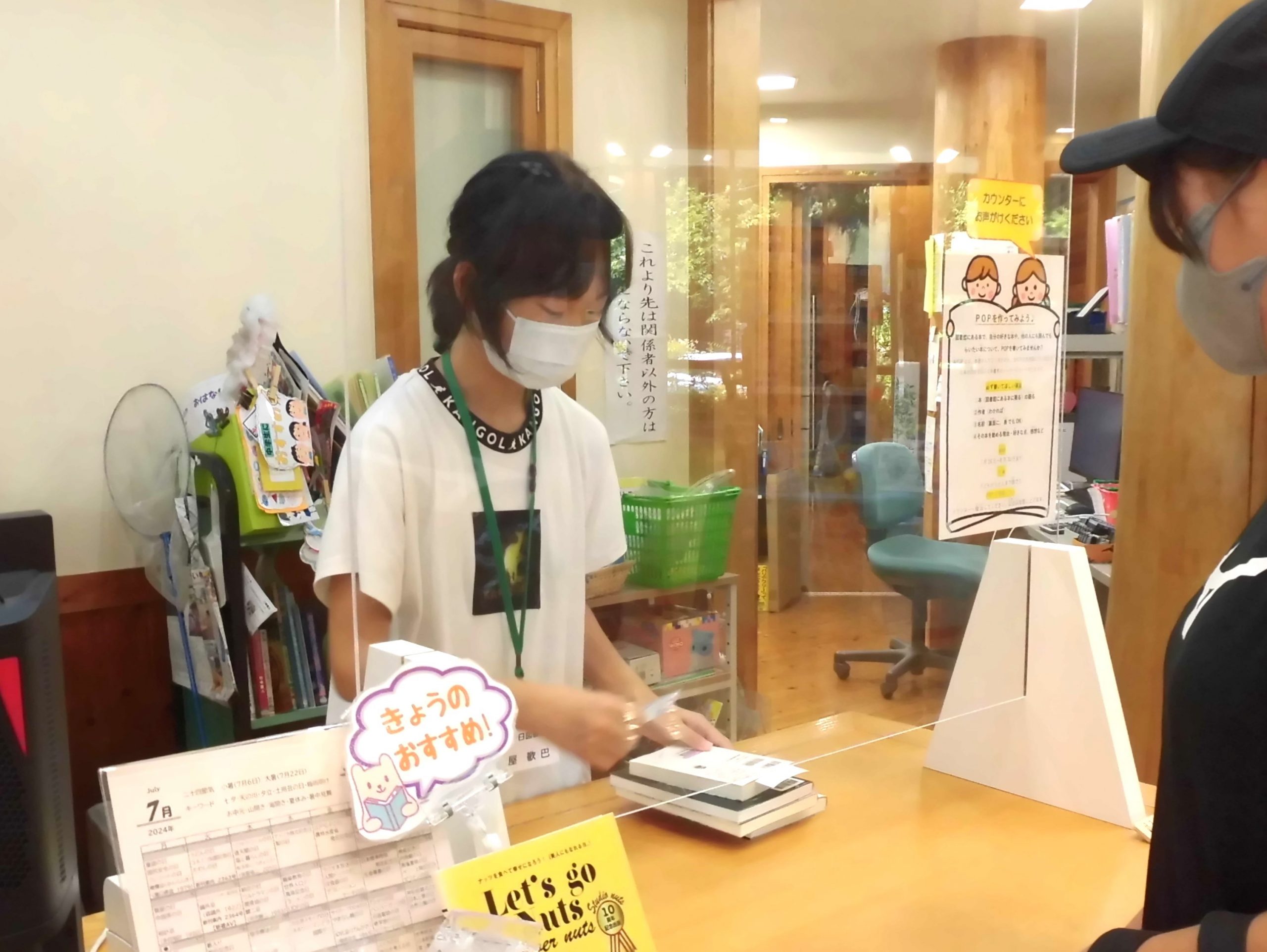 短い時間でしたが、利用者さんへの対応、本の貸出・返却、本の片付け、おはなし会のおみやげ作りなど一生懸命頑張ってくれました。