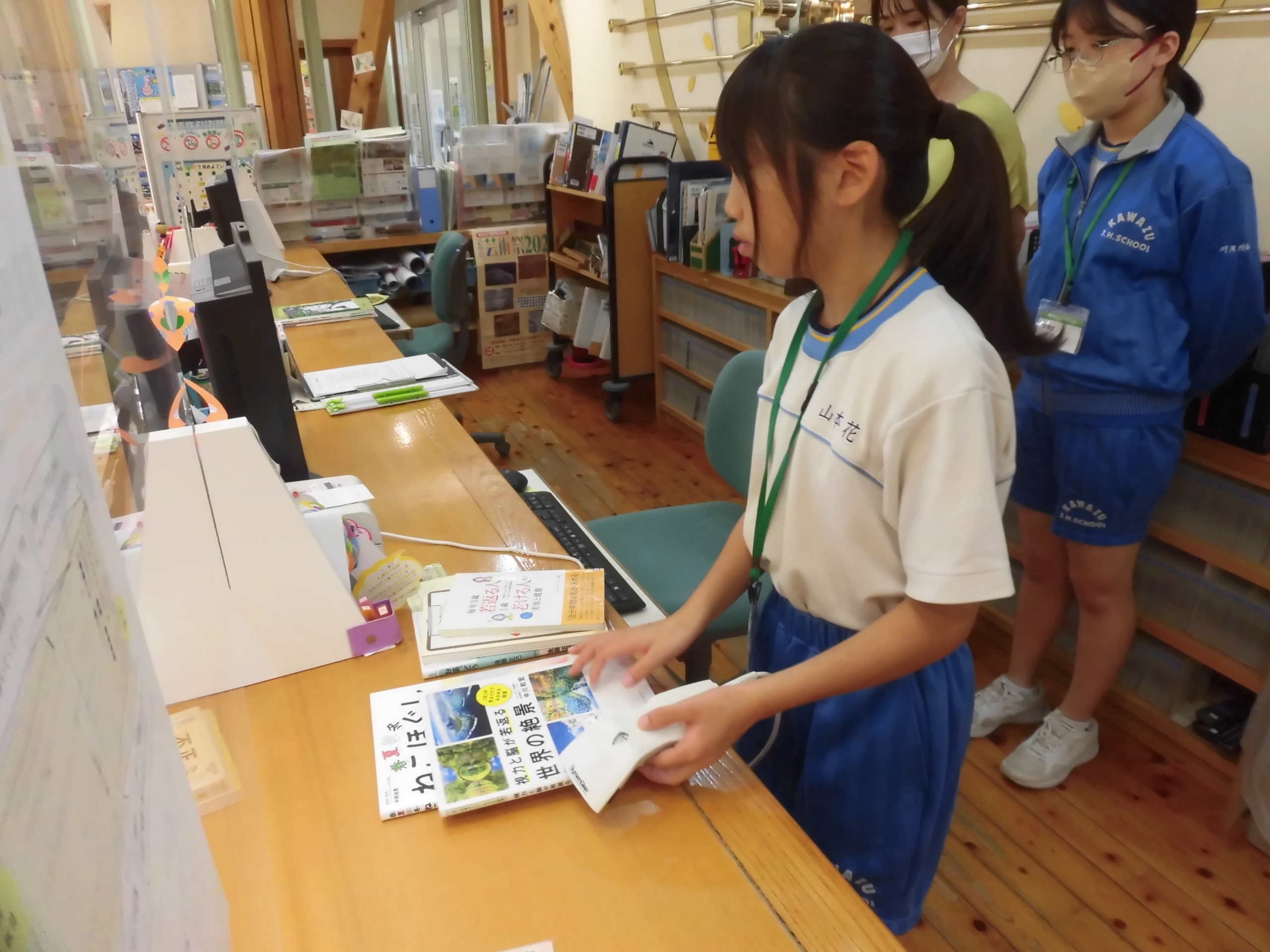 7月末の休館日には図書整理、掲示物の展示準備、図書館内の掃除なさまざまな仕事にも頑張って働いてくれました。