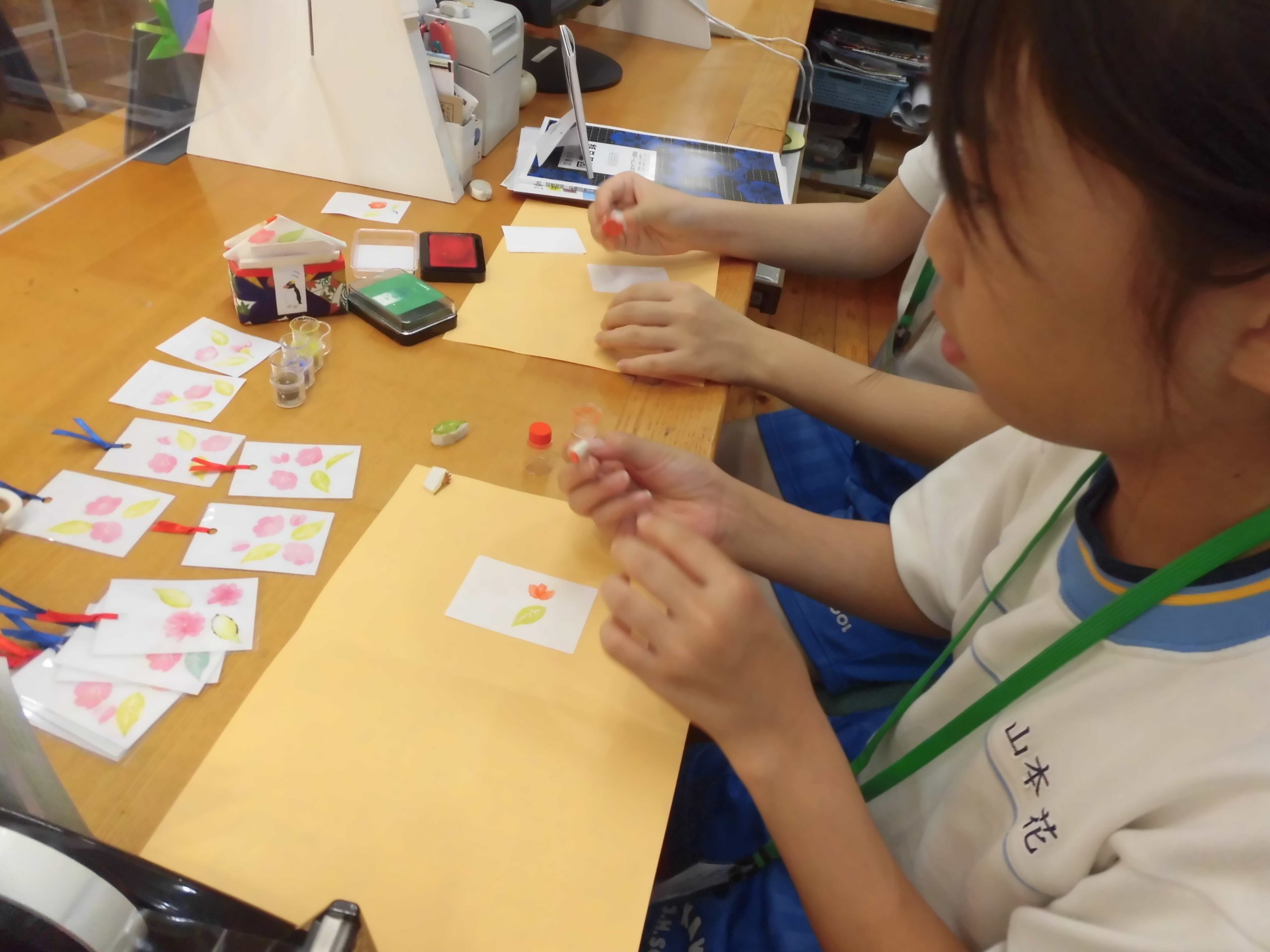 カウンターでは貸出返却業務。その合間に、消しゴムはんこで作った桜のしおりや、おはなし会の子ども達へのプレゼント作りなど、どんな仕事も一生懸命、頑張ってくれました。